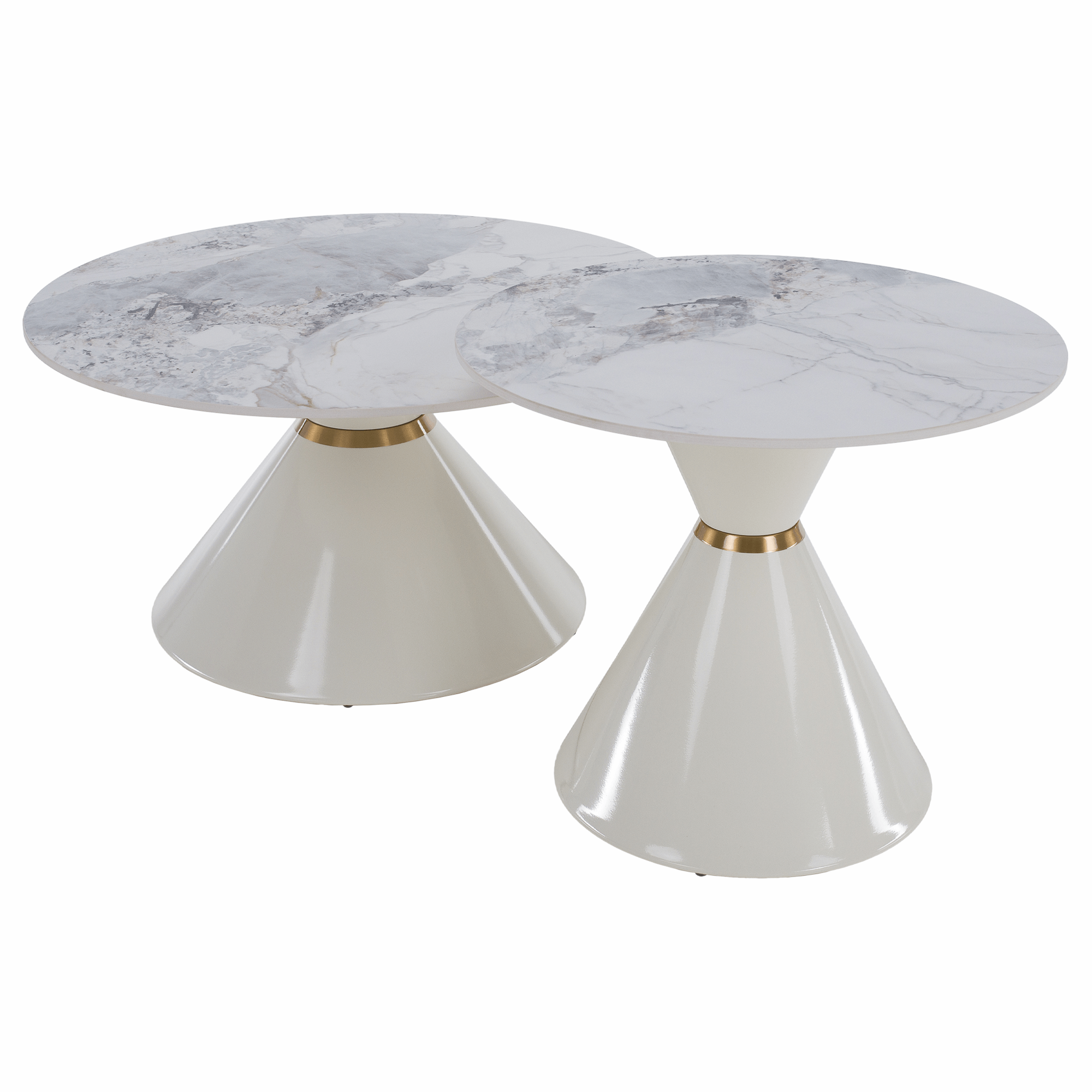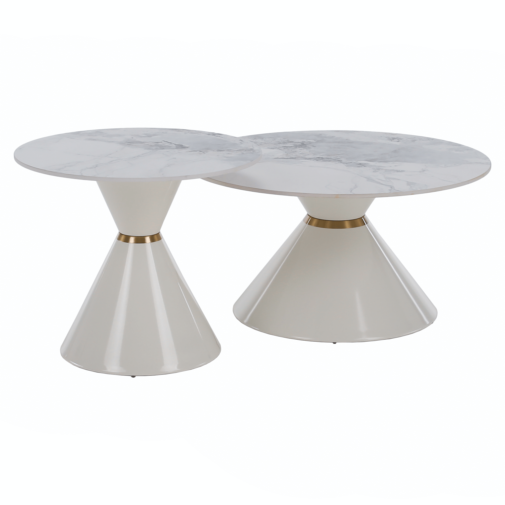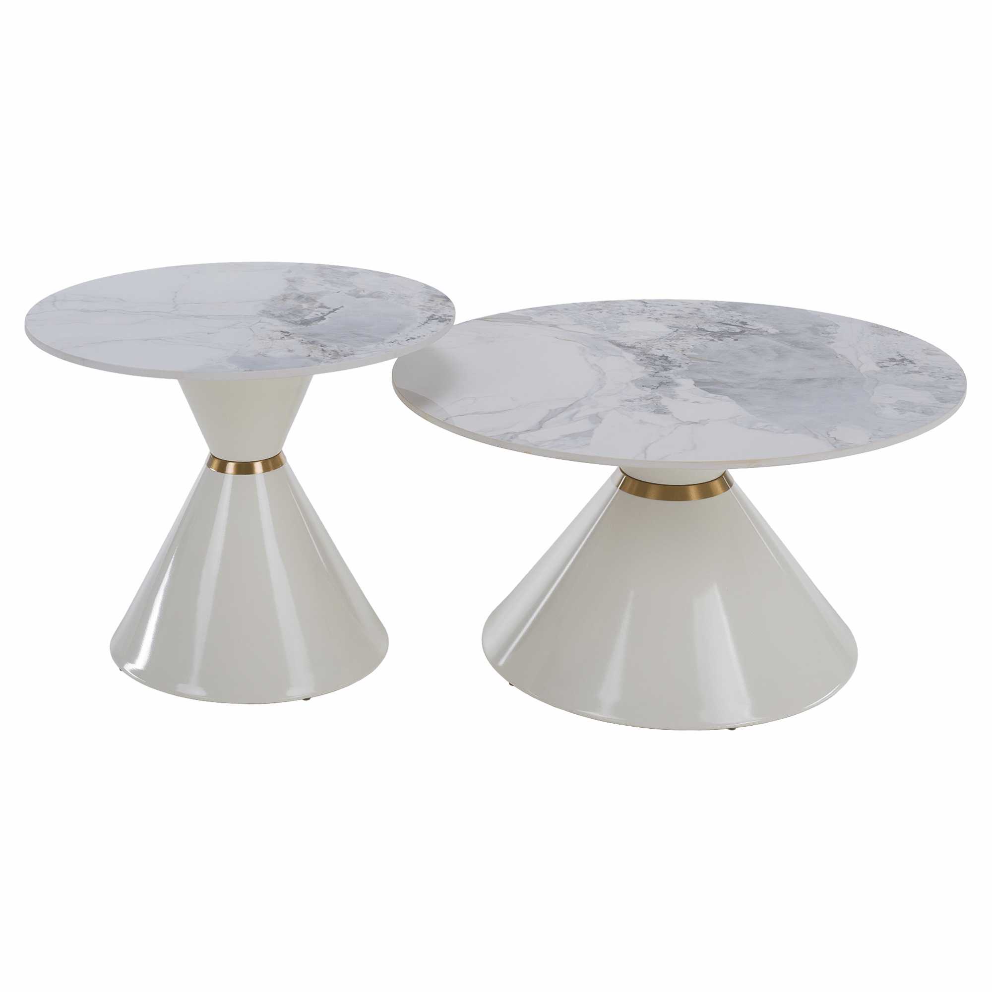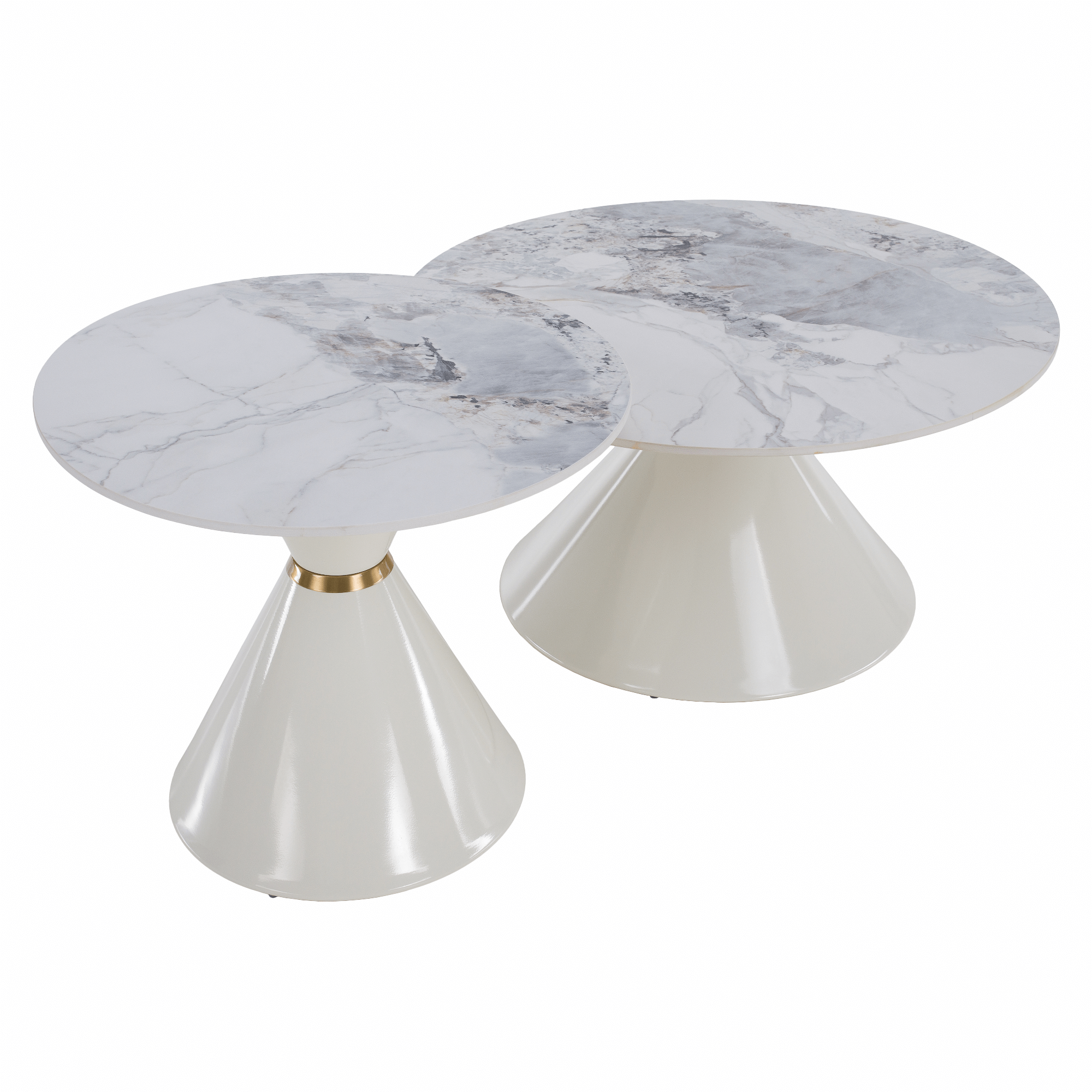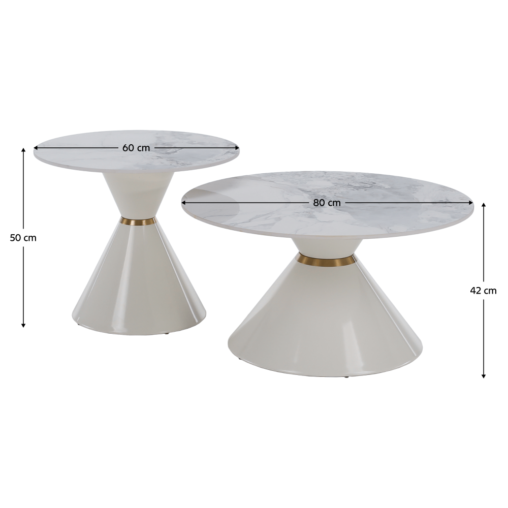Konferenčné stolíky, set 2 ks, biely mramor/biela/zlatá, kov, MABUZ NEW
