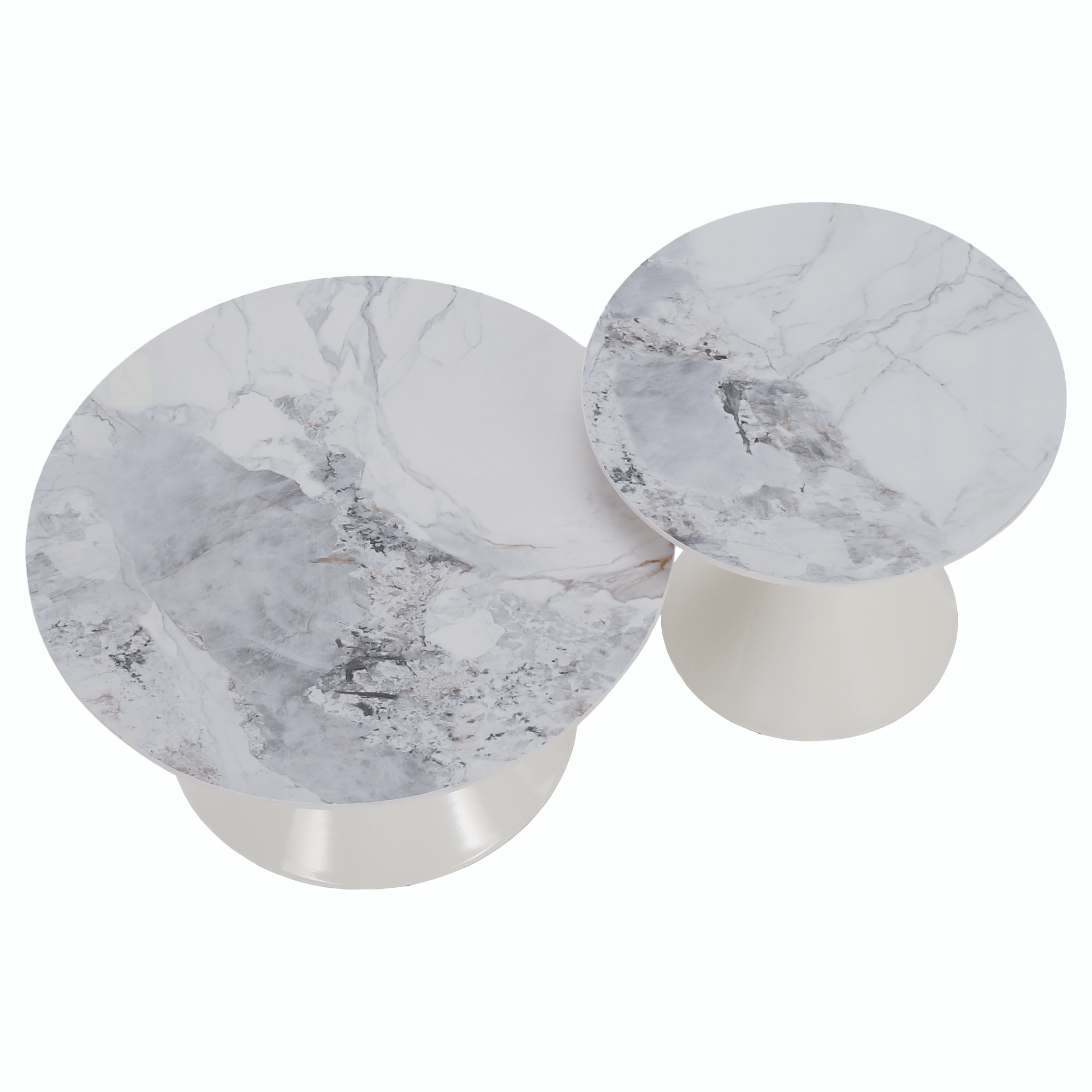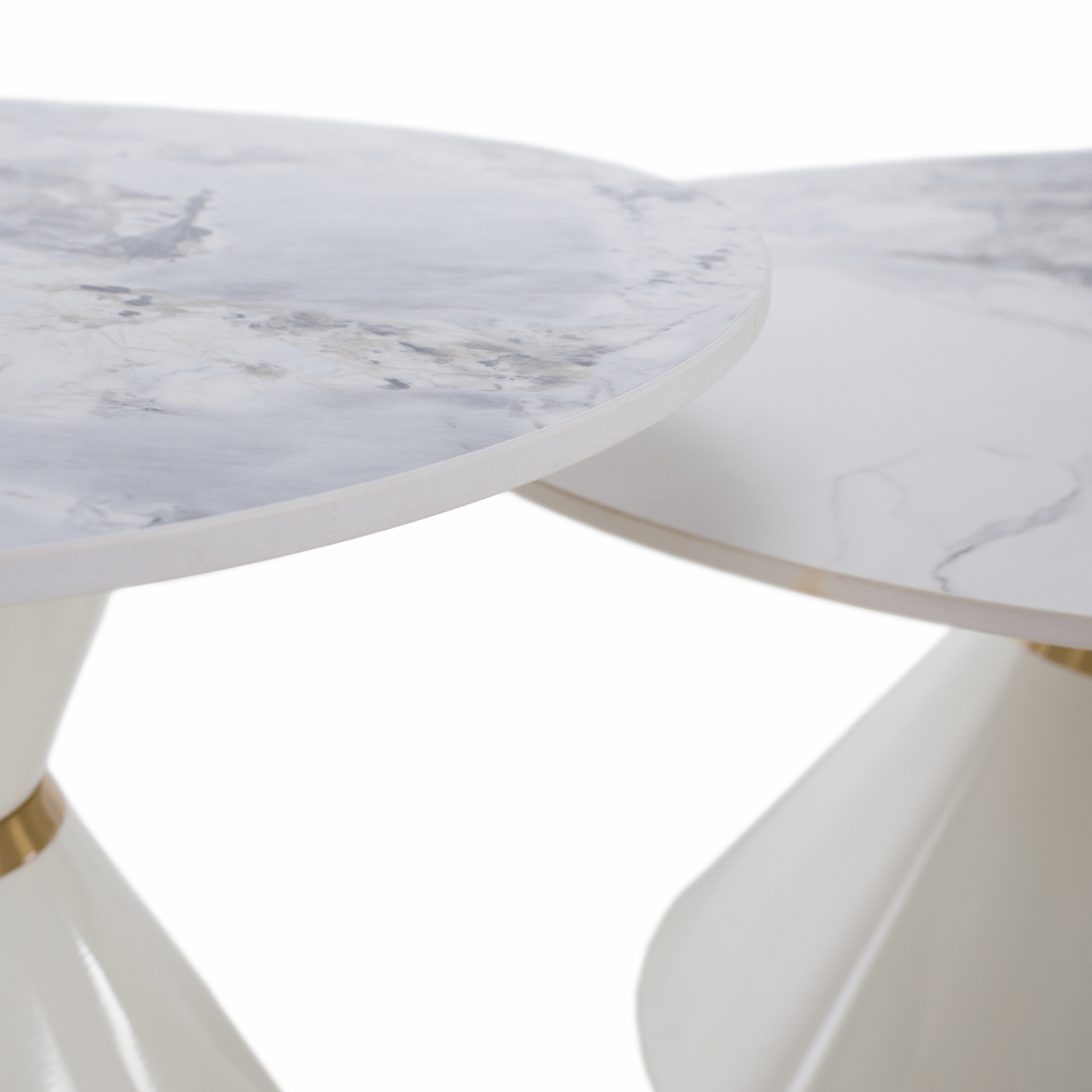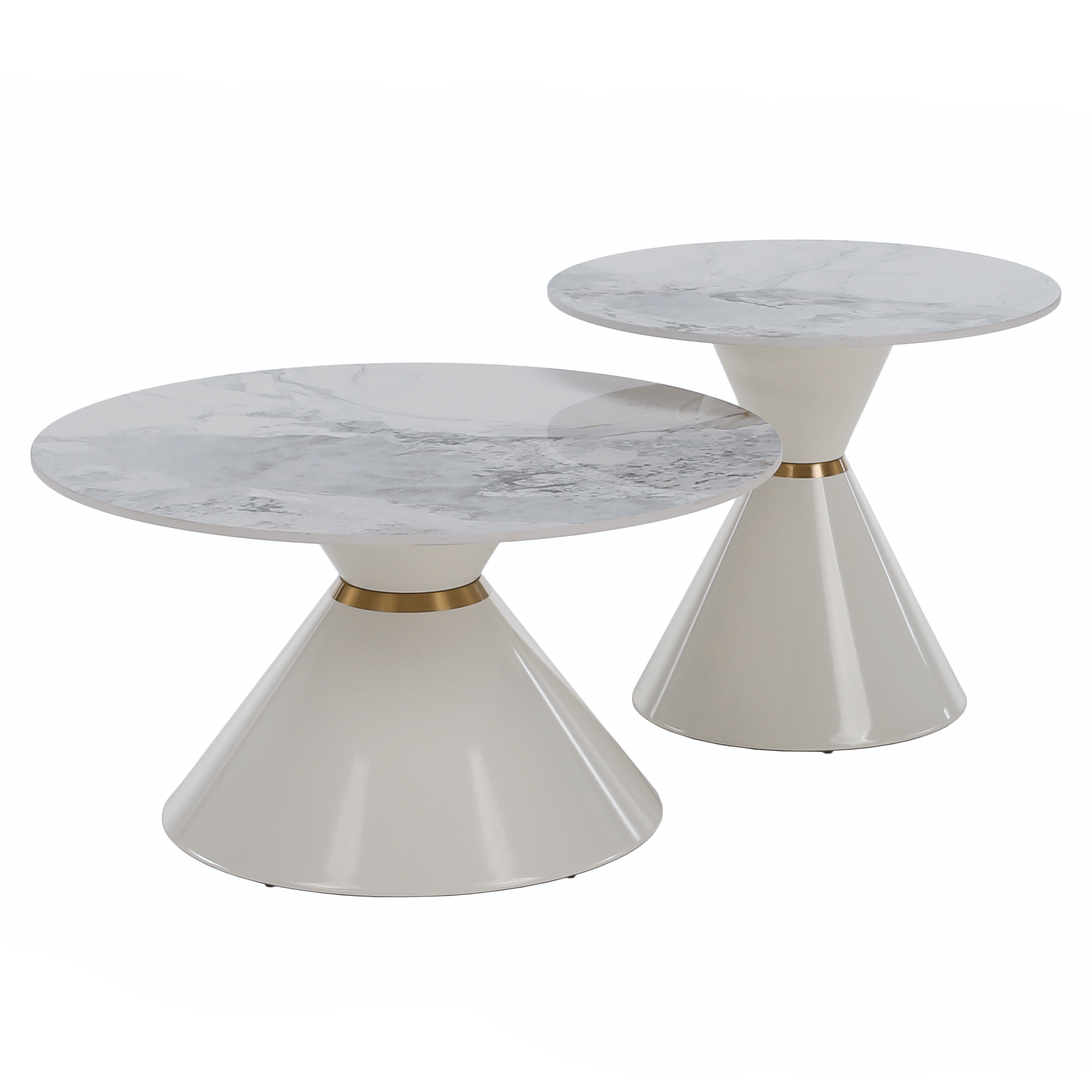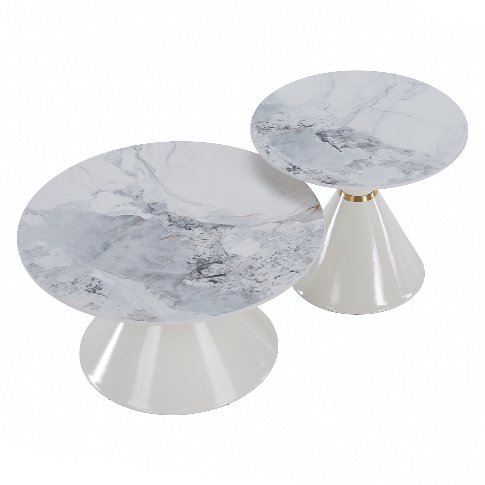 Konferenčné stolíky, set 2 ks, biely mramor/biela/zlatá, kov, MABUZ NEW