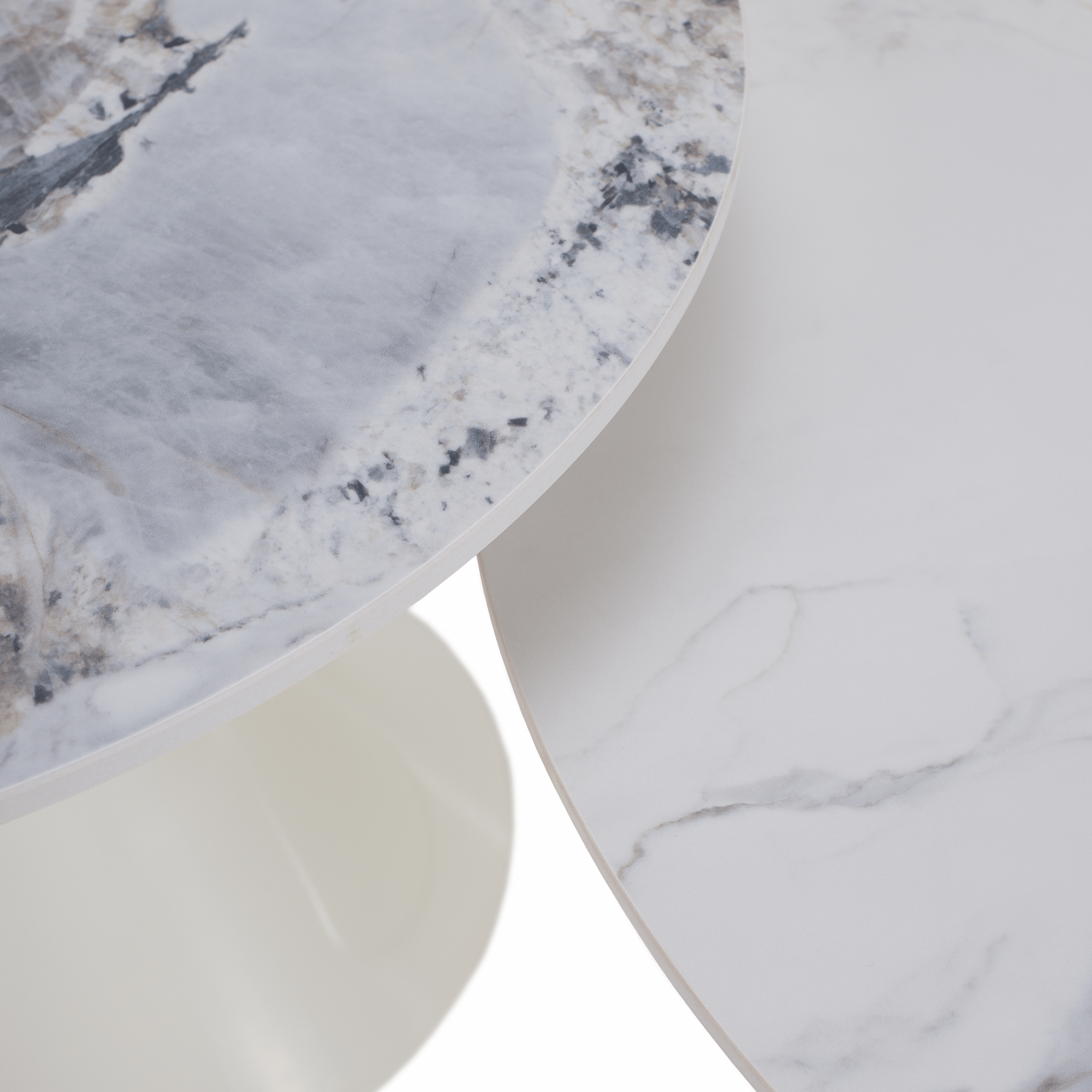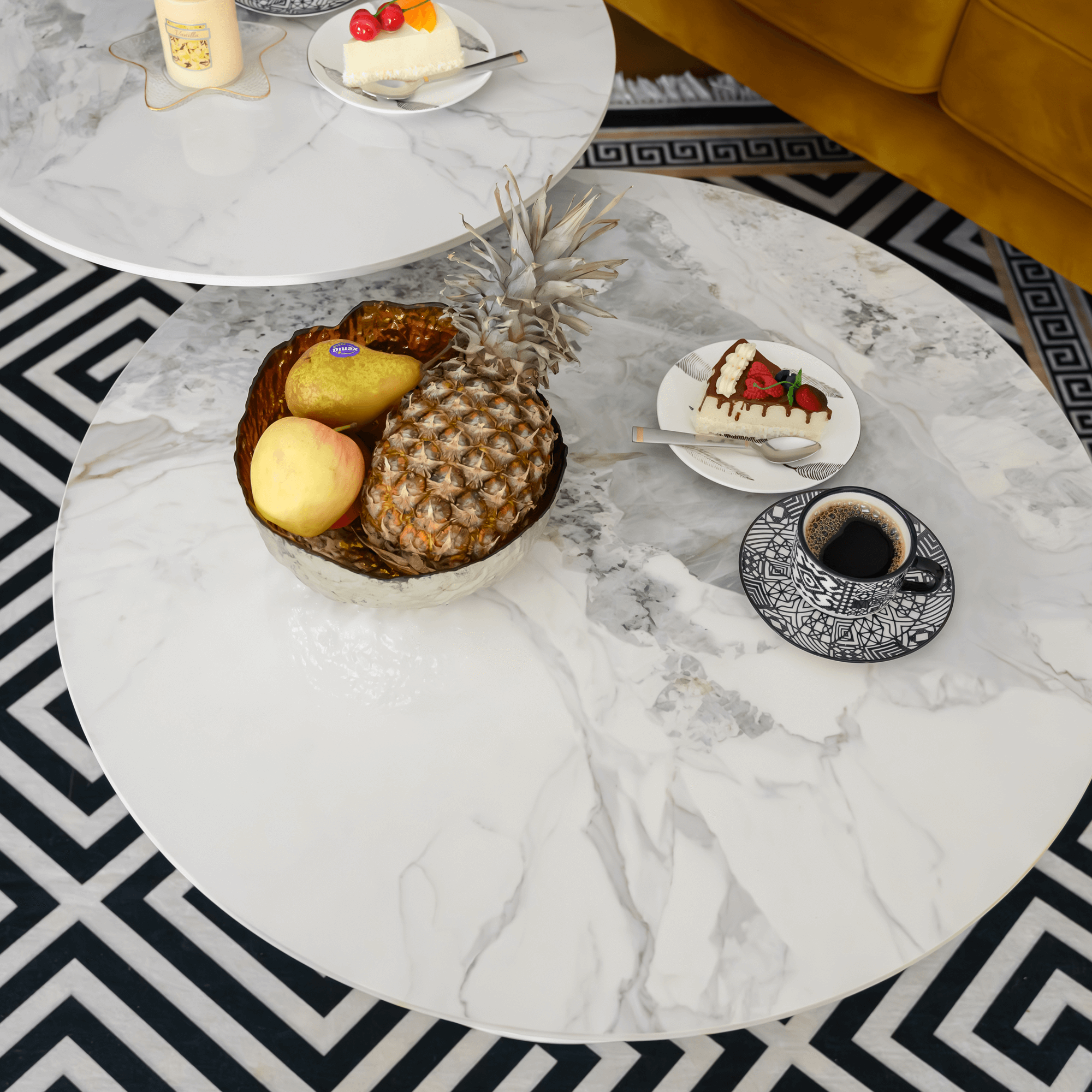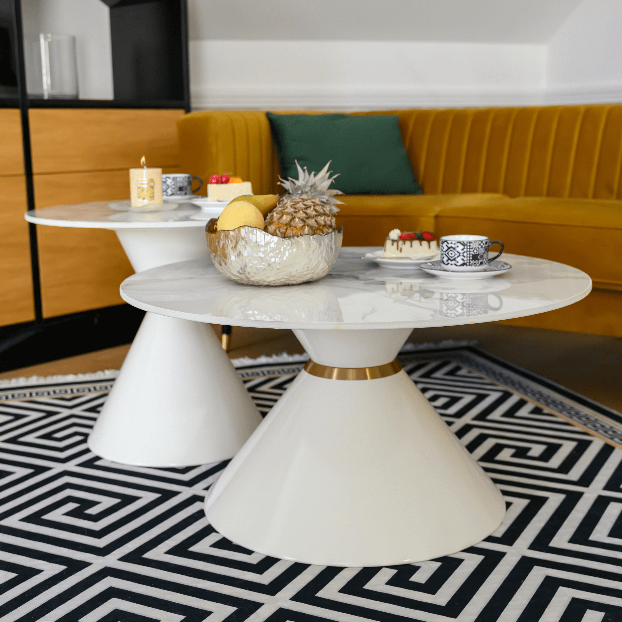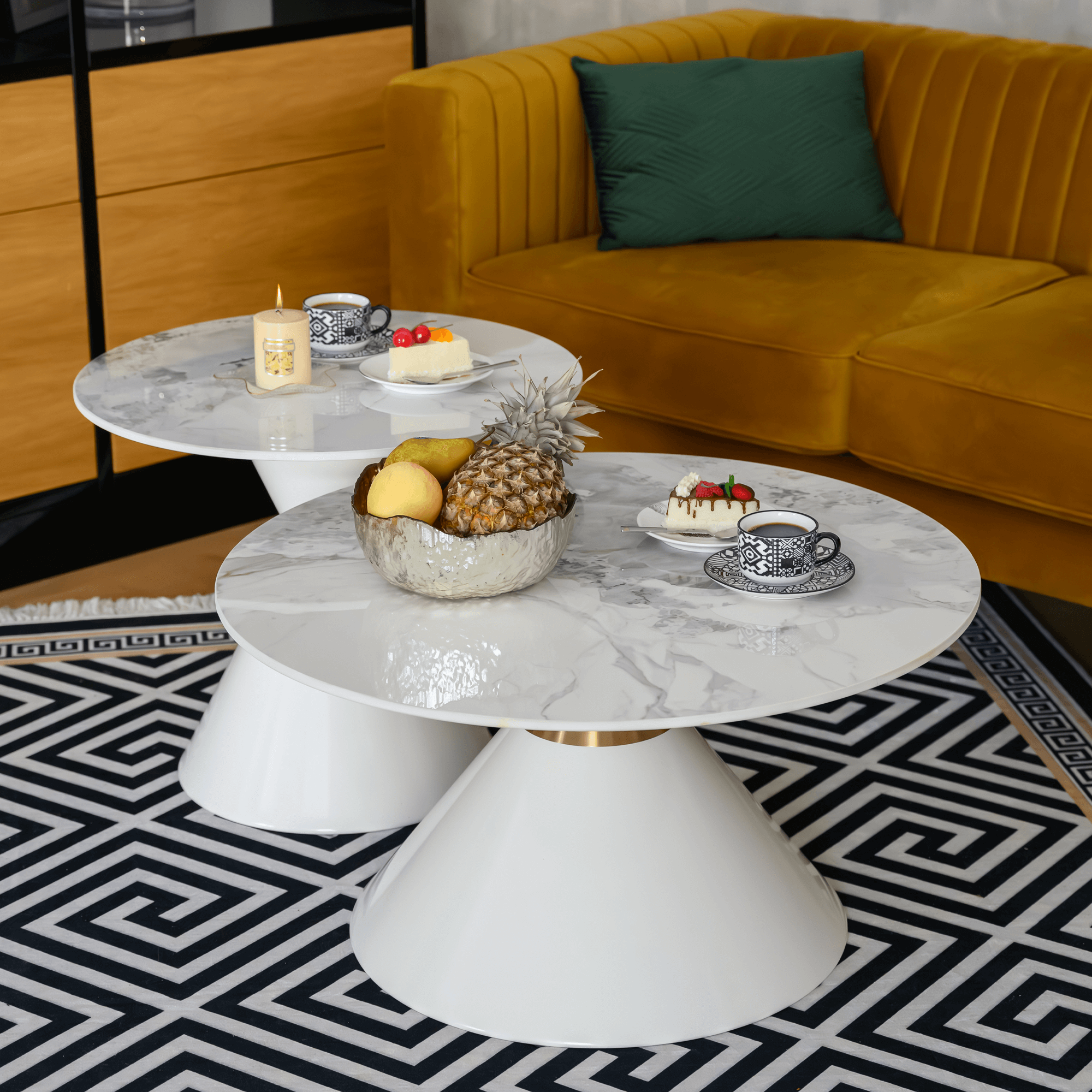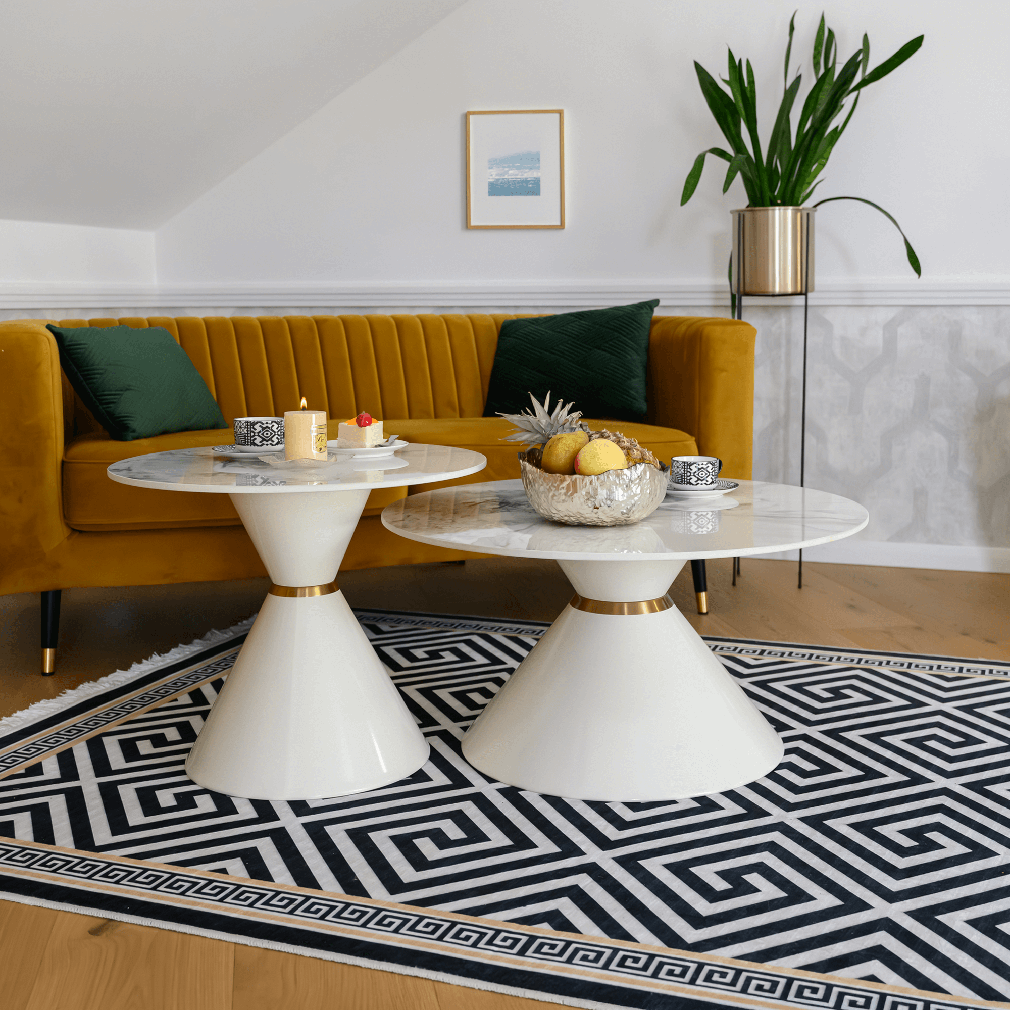 Konferenčné stolíky, set 2 ks, biely mramor/biela/zlatá, kov, MABUZ NEW