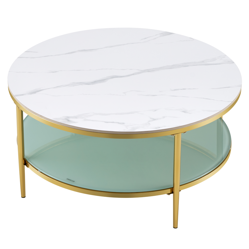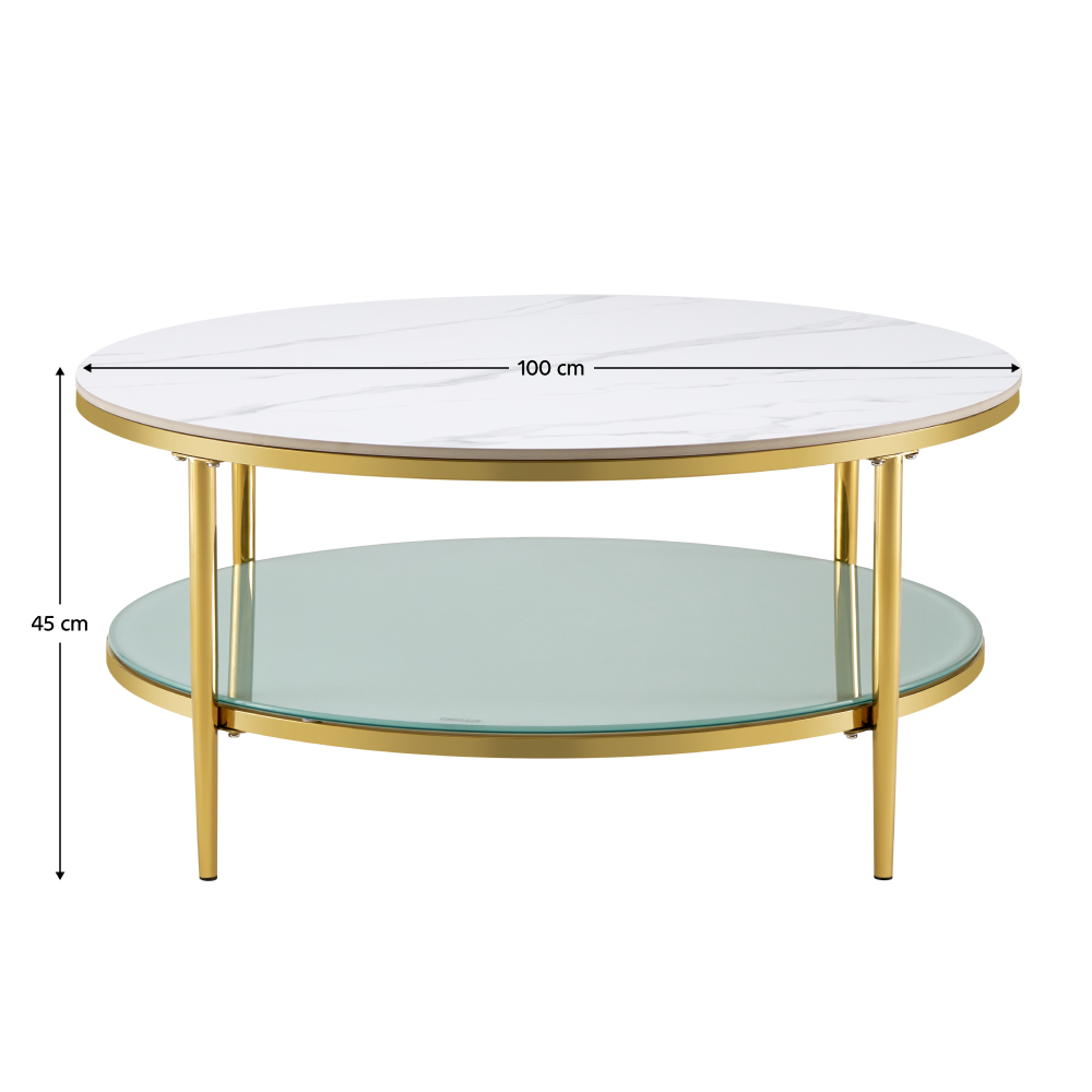 Konferenčný stolík, svetlý mramor/mliečna/gold chróm-zlatý, ENION 2 NEW