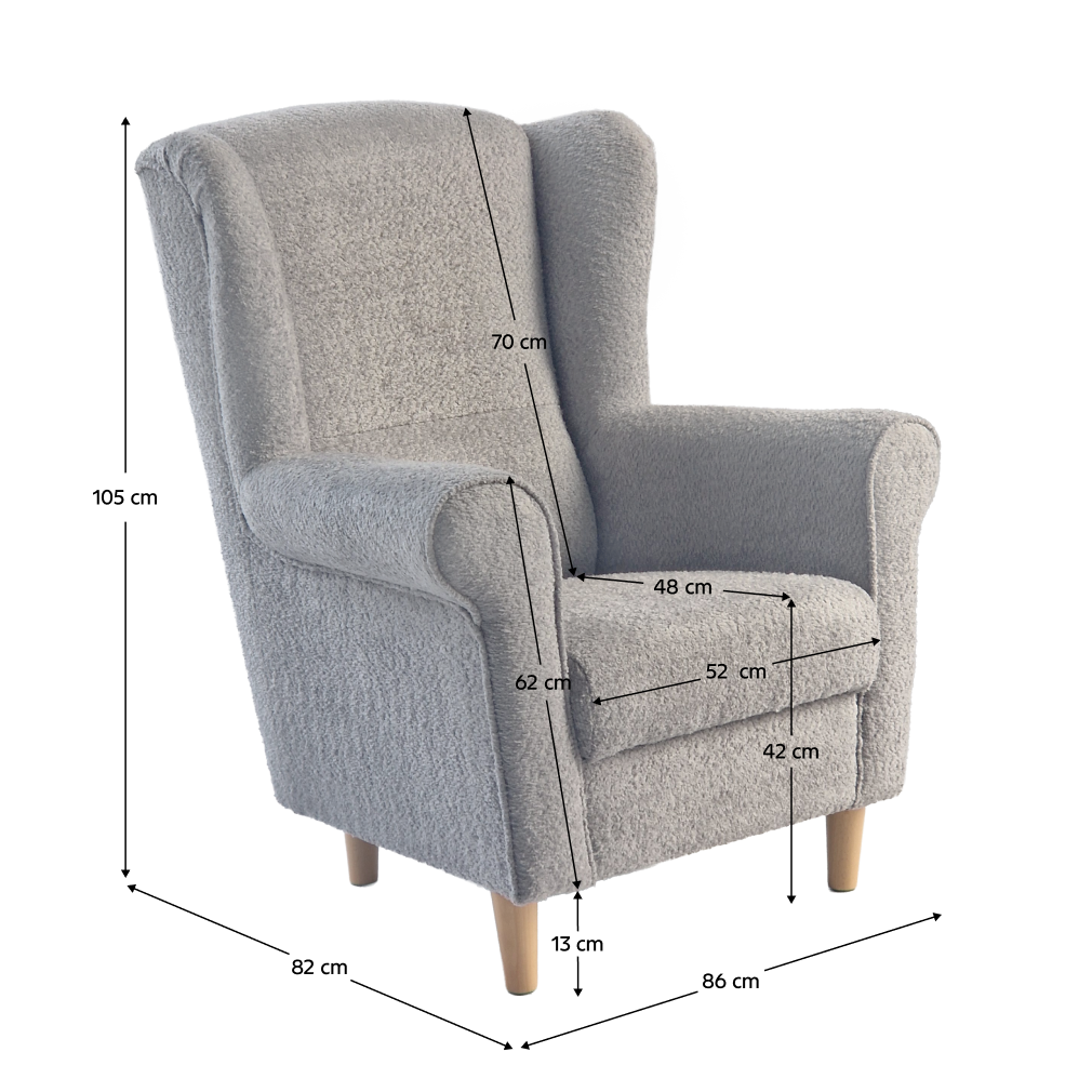 Kreslo ušiak, sivá látka Coral, CHARLOT