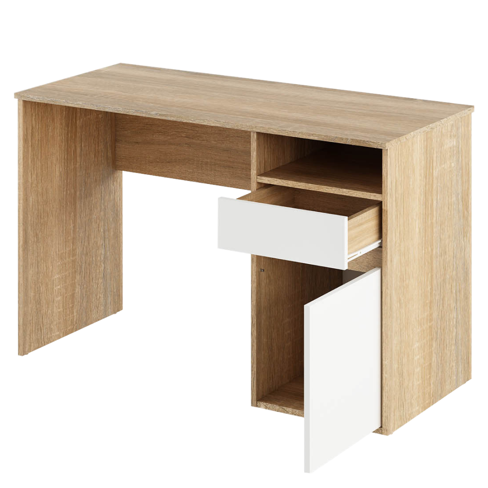PC stôl, dub sonoma/biela, BILI NEW