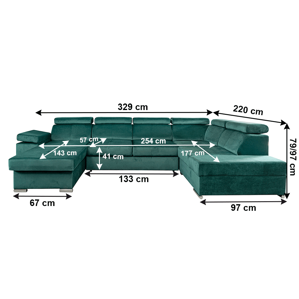 Rozmery: (ŠxHxV): 329x220x79/97 cm